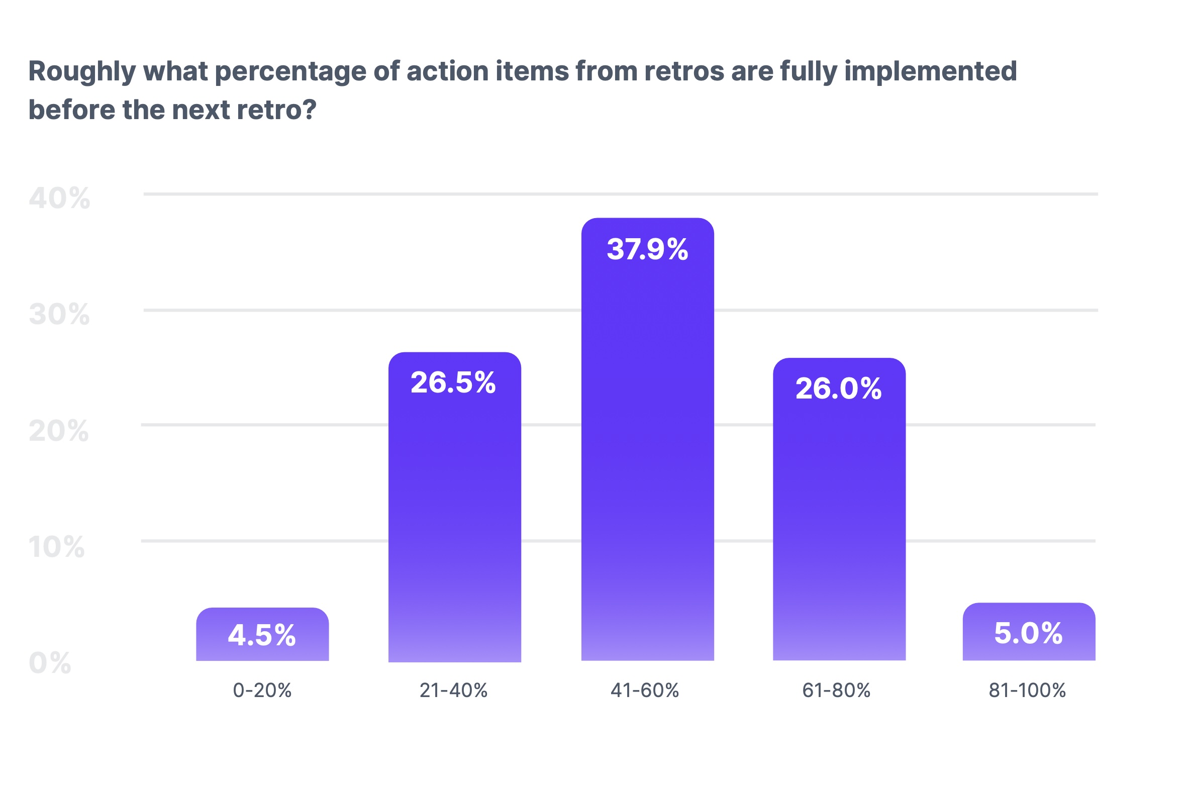 Teams say that retros identify the right problems. But they implement less than 60% of the actions.