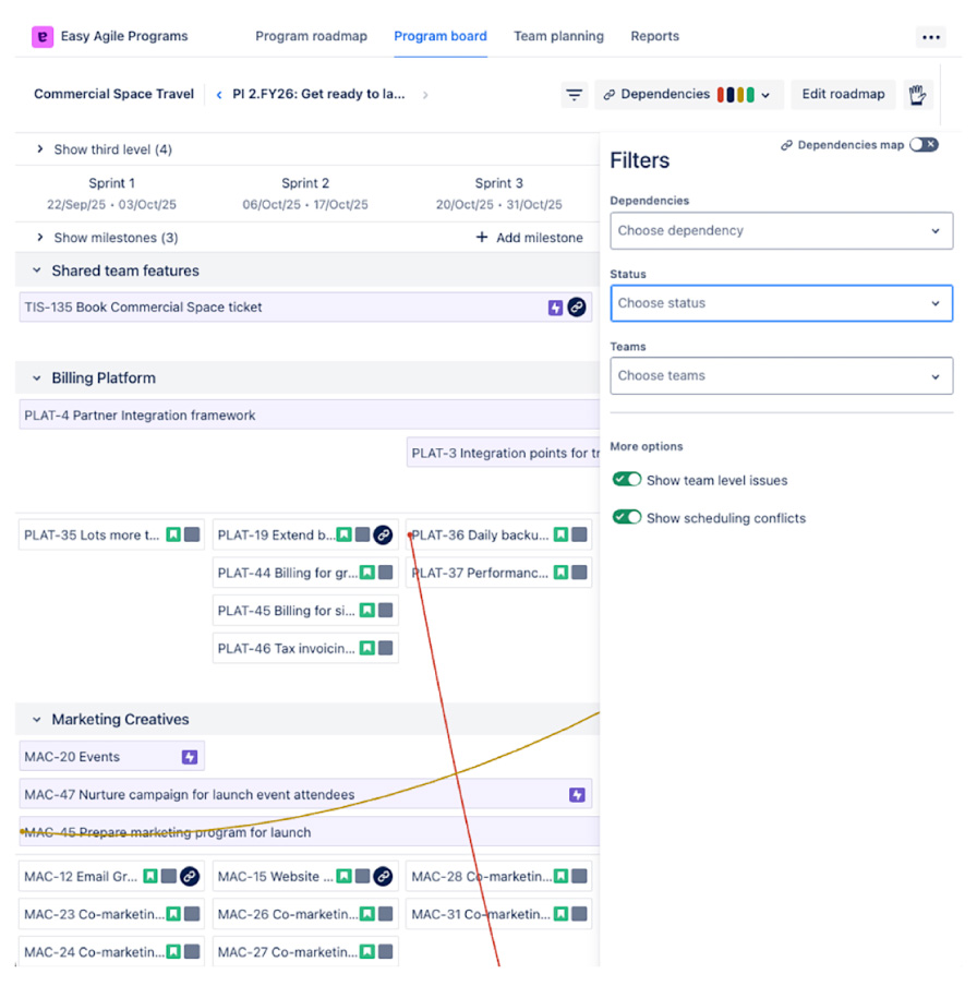 Easy Agile Programs hilft dir dabei, gemeinsame Ziele zu erstellen, die direkt mit der Arbeit in Jira verknüpft sind, sodass Führungskräfte, Product Owner und Teams Ziele, Abhängigkeiten und Ergebnisse an einem Ort sehen können. Der Fortschritt bleibt sichtbar und der Support geht dorthin, wo er zählt.