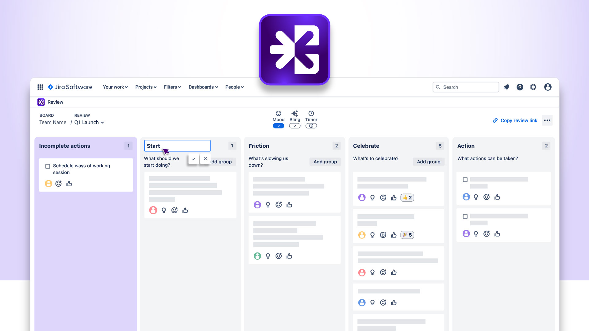Review is a free, Jira-native app that helps teams run retros, reviews, or debriefs with less effort and more impact. Our objective is to make these as simple, purposeful and action-oriented as possible.